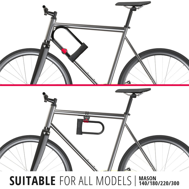 A Mounting Bracket for attaching the lock to your bike's frame Fits any of our U-Locks Fits a wide spectrum of frame widths Enables endless mounting positions
