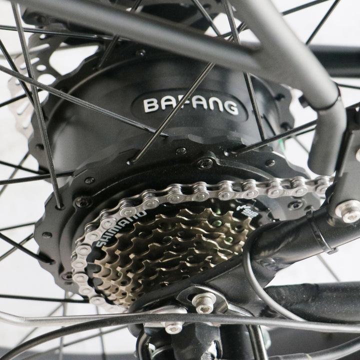 We have upgraded everything to maximize the quality and price point with a super fast - 52v/750w Bafang Motor with a 17AH Samsung cell battery. Jevelo XD-300 Hydraulic Brakes. Color screen. Front and rear fenders and rack all included standard.